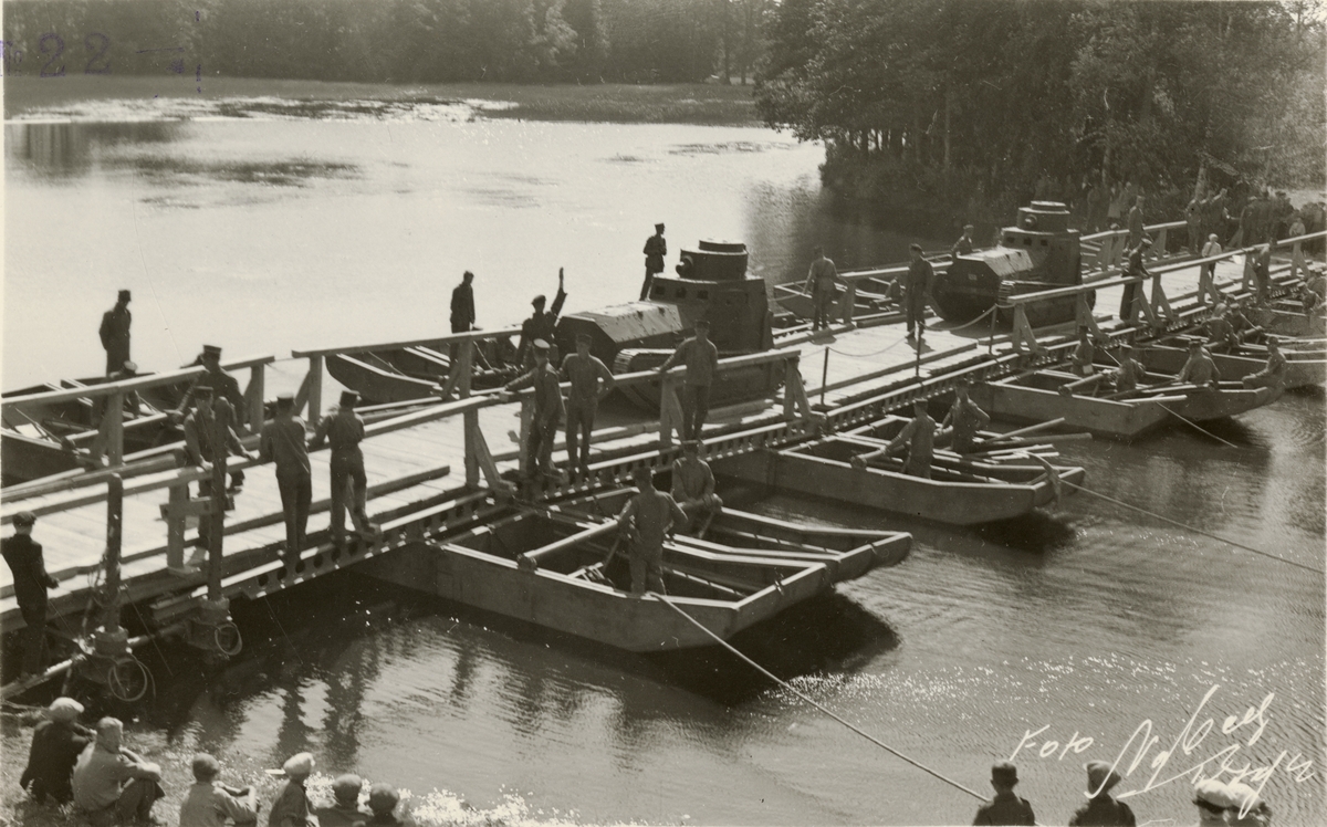 Text i fotoalbum: "Tung krigsbro vid Vestanå juli 1935".