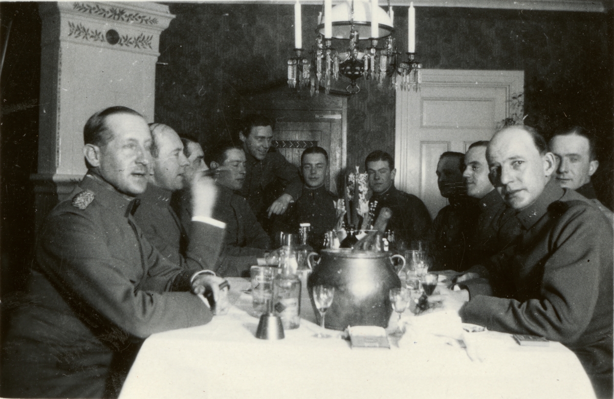 Text i fotoalbum: "Vinterövningarna 1930. Befälsmöte".