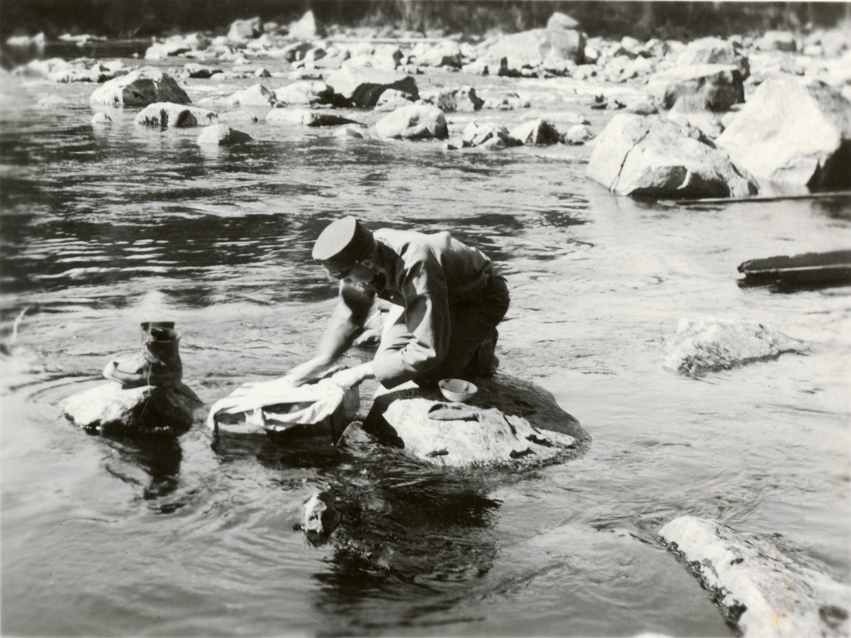 Text i fotoalbum: "Efter semesterns slut for jag 24. juli till Laxön, som alltid utövar en ljusning även på pojkarna. De får här reda sig utan civilisationens bekvämligheter".