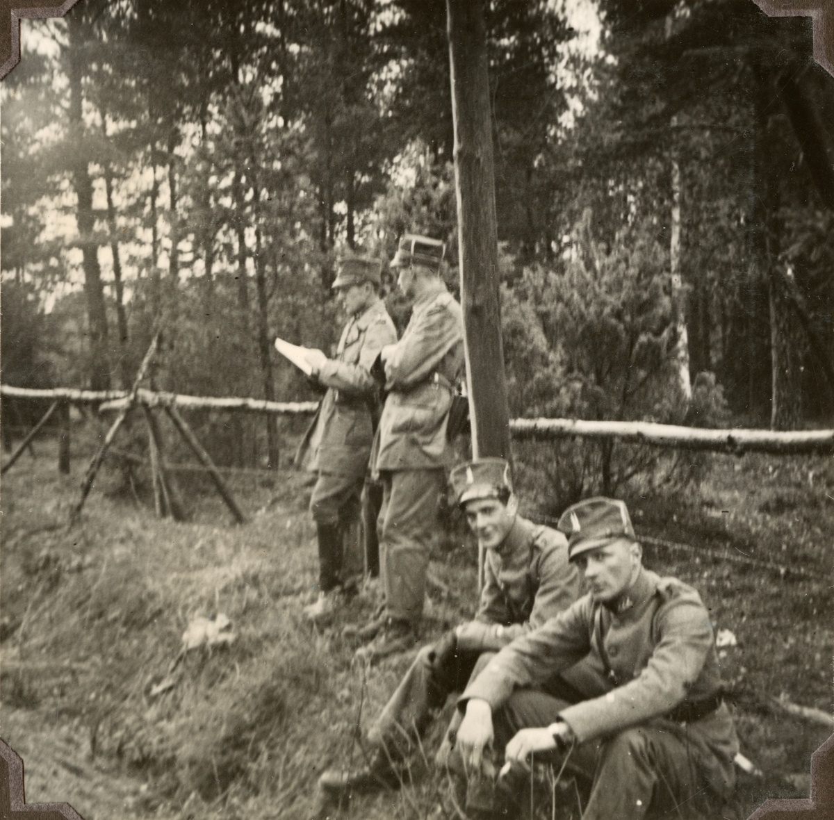Text i fotoalbum: "Som avslutning på repetitionsövningarna 1935 fick jag med ett kompani bygga en liten landsvägsbro söder om Eksjö vid Qvarnkullen. Order för hemmarschen".