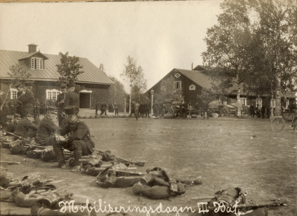 Text på bilden: "Mobiliseringsdagen, III. bat,".