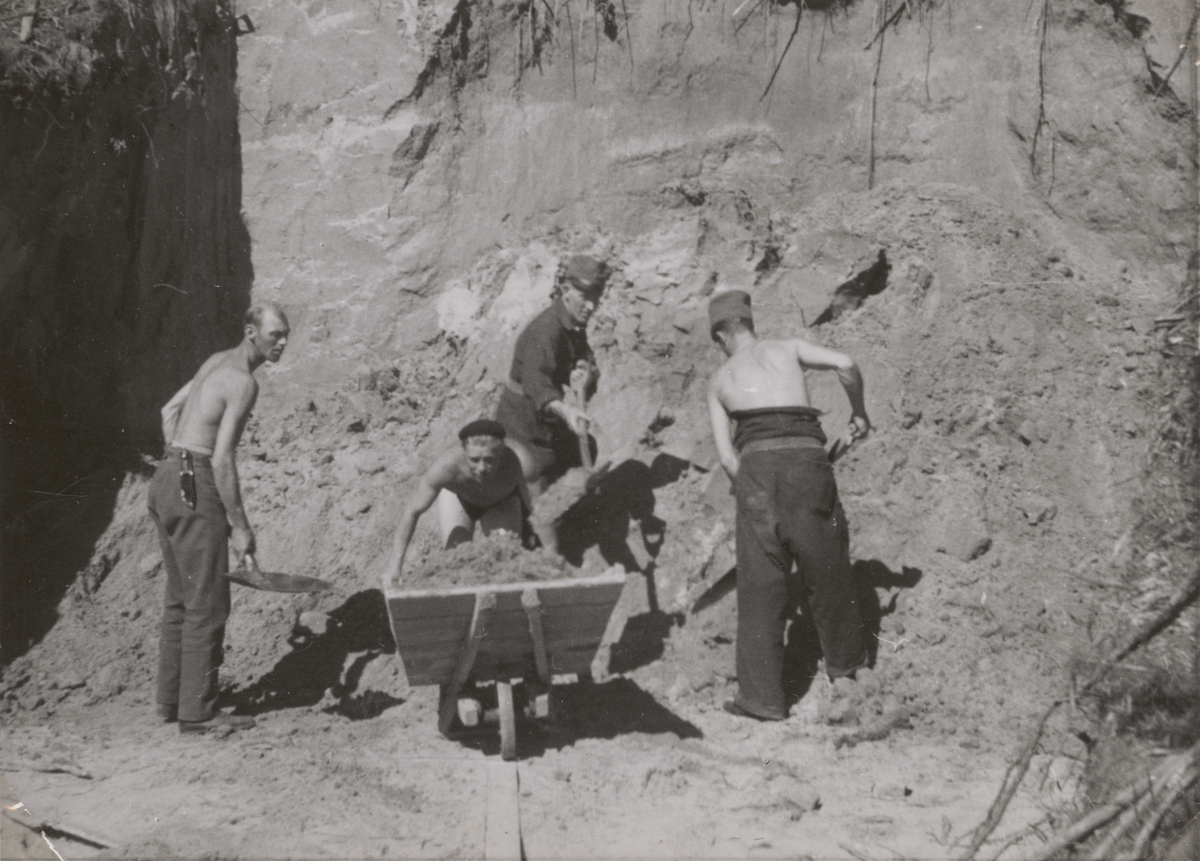 Titel: Text i fotoalbum: "Vi gräver skyddsrum vid Täppan".