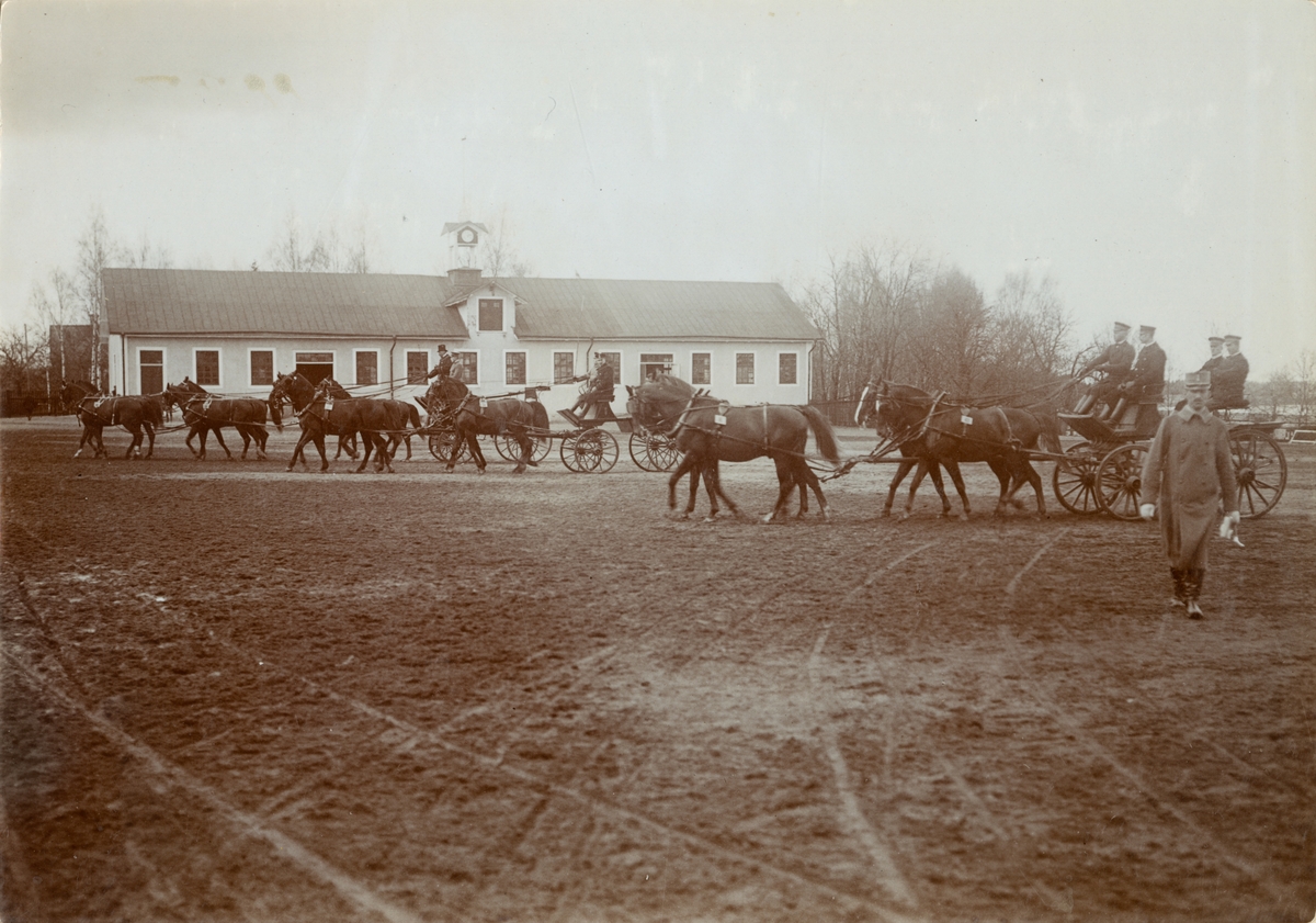 Titel: Hästspann på ridplan.