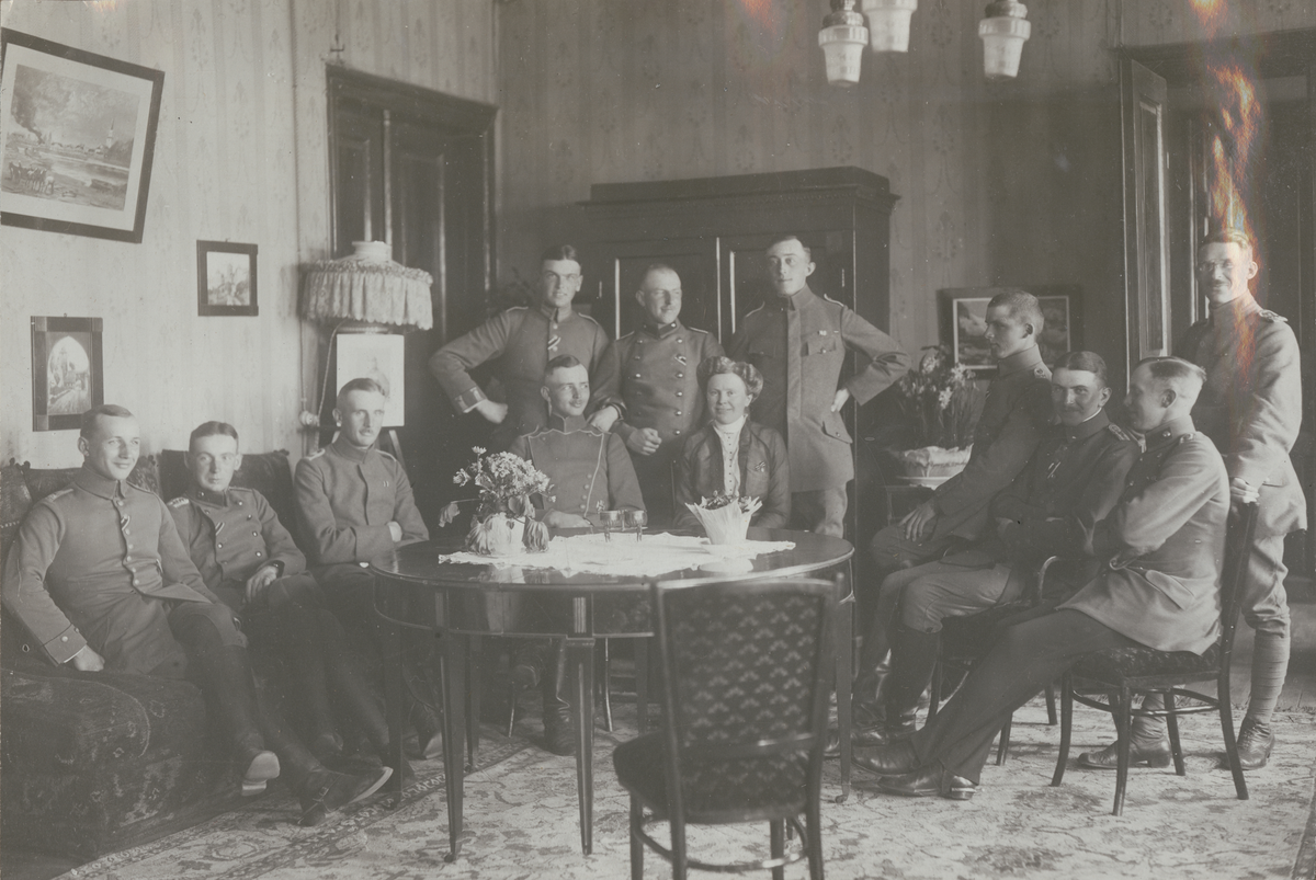 Text i fotoalbum: "Från min vistelse i offizier Erholungsheim Mitau. Augusti 1916 - maj 1917. I hemmets salong, maj 1917."