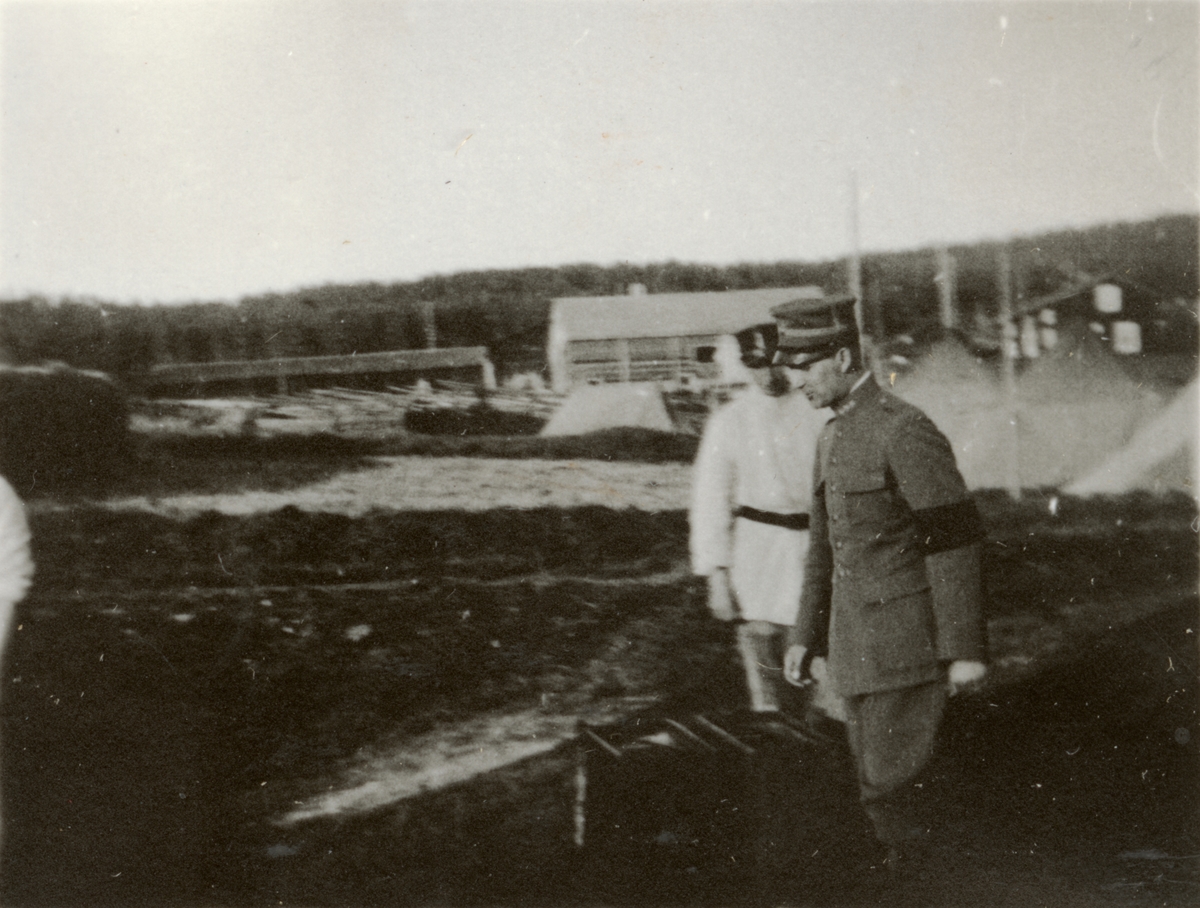 Titel: Text i fotoalbum: "1936. Aug. Med Arntz på inspektion av Int 3 nordväst Boden. Komch. Patersson".