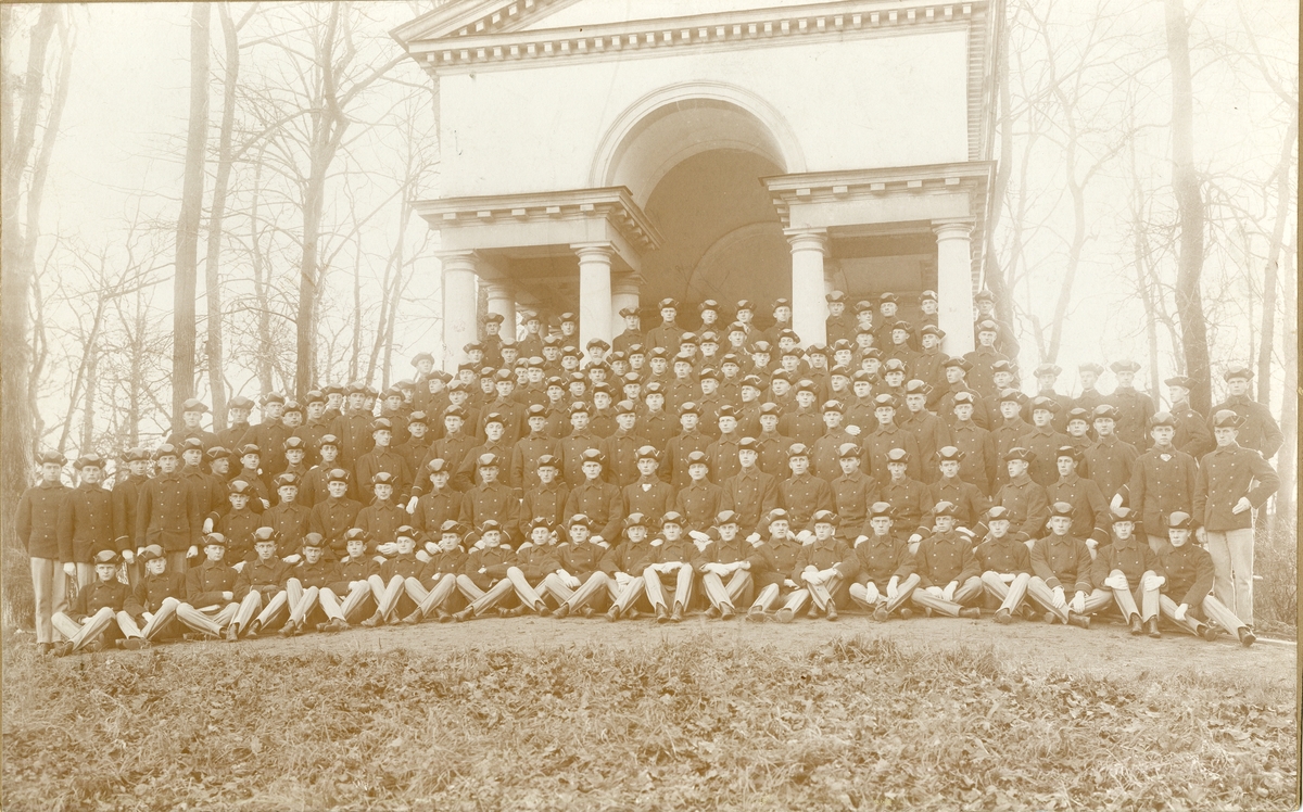 Titel: Grupporträtt av utexaminerade elever från krigsskolan 1917.