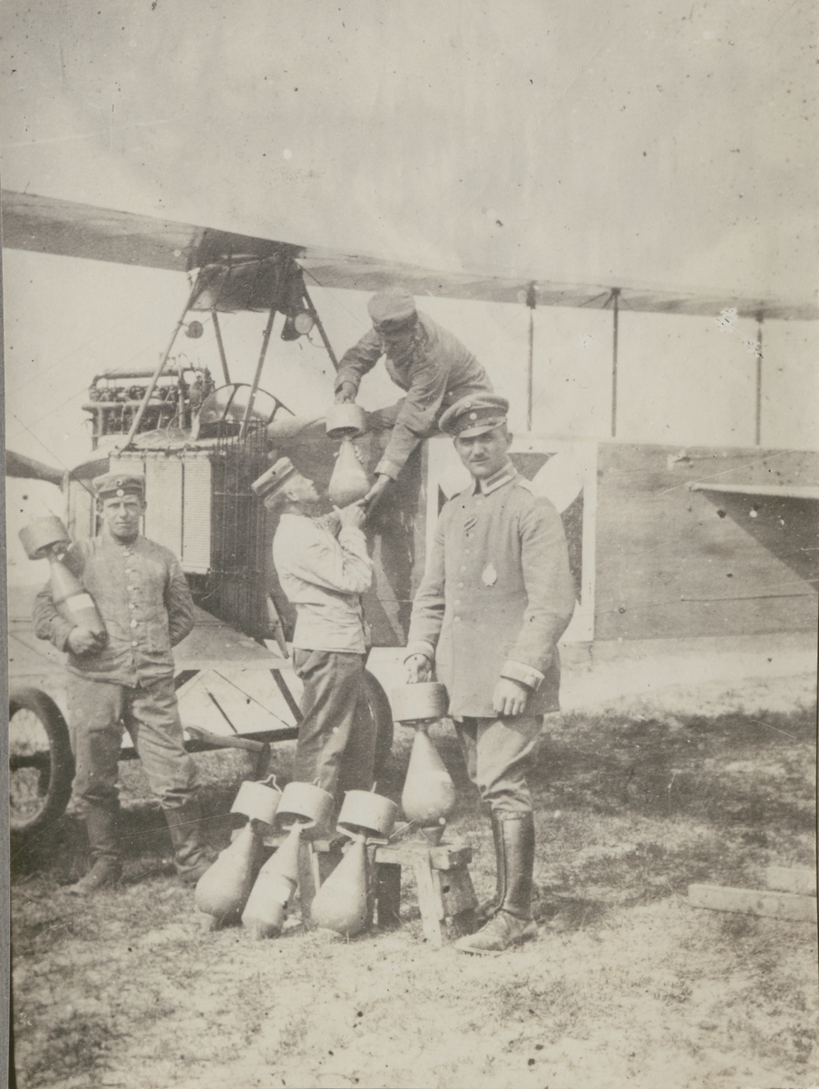 Titel: Text i fotoalbum: "Tysk bombflygare tar bomber ombord".