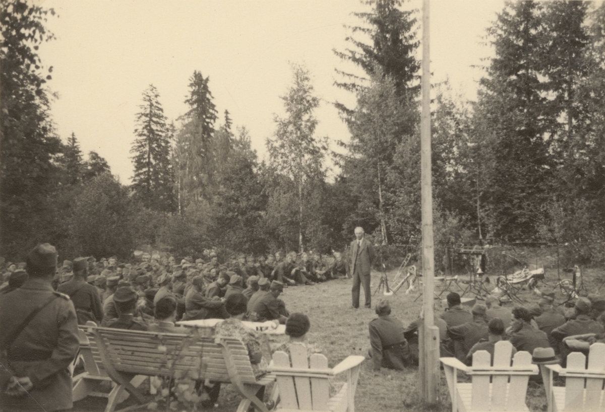 Titel: Text i fotoalbum: "Rektor Dahlgren läser Fröding".