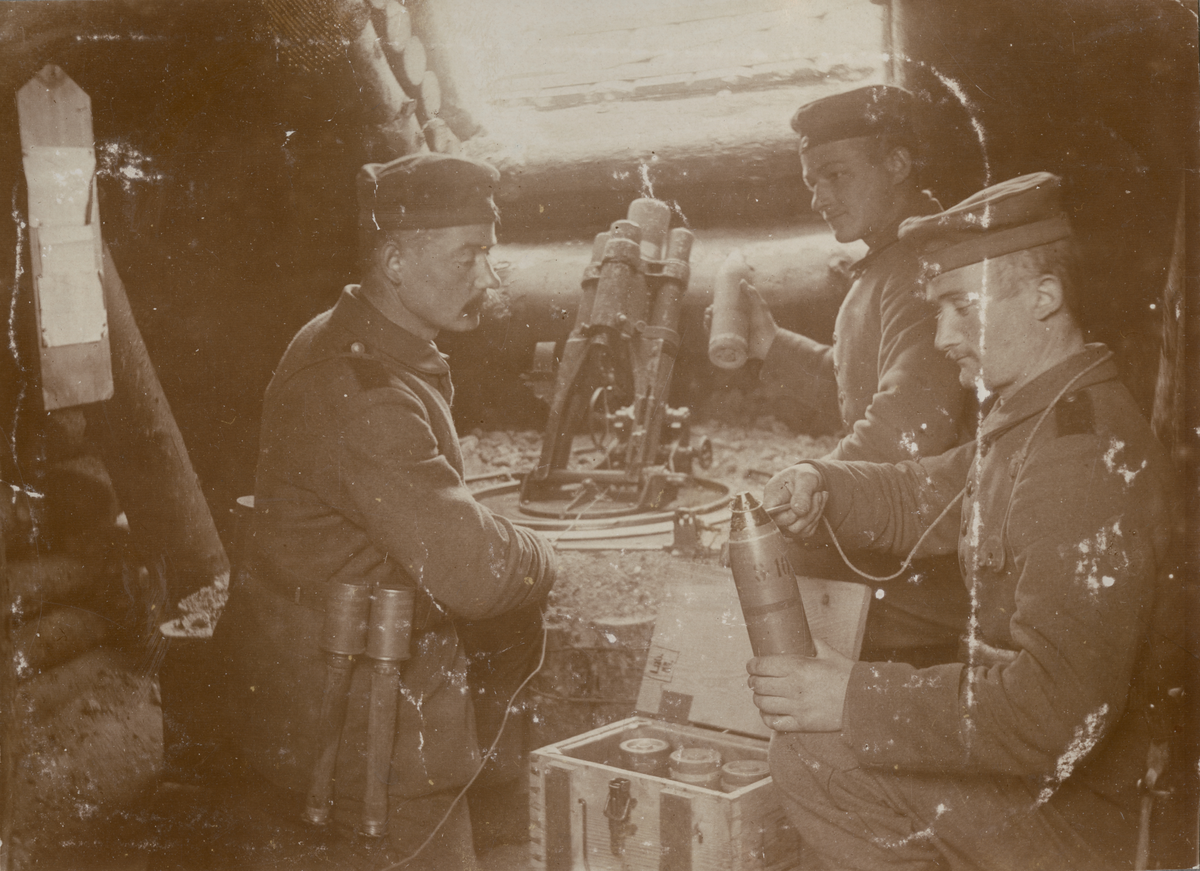 Titel: Text i fotoalbum: "Våren 1917. Handgranater. Lätta minkastare"