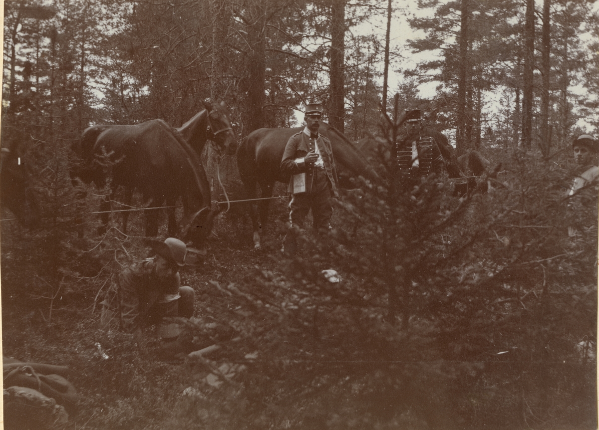Elever vid Kavalleriskolan i skogen vid Koddis, Umeå.
