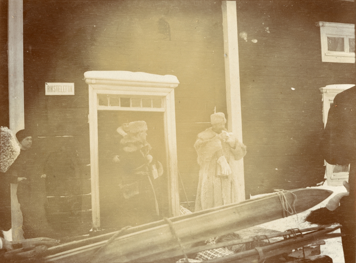 Titel: Smålands husarregemente K 4 på vinterövning i Norrbotten omkring 1910.