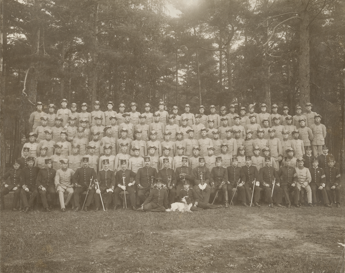 Text i fotoalbum: "2. officersvolontärkompaniet, Karlsborg 1907."