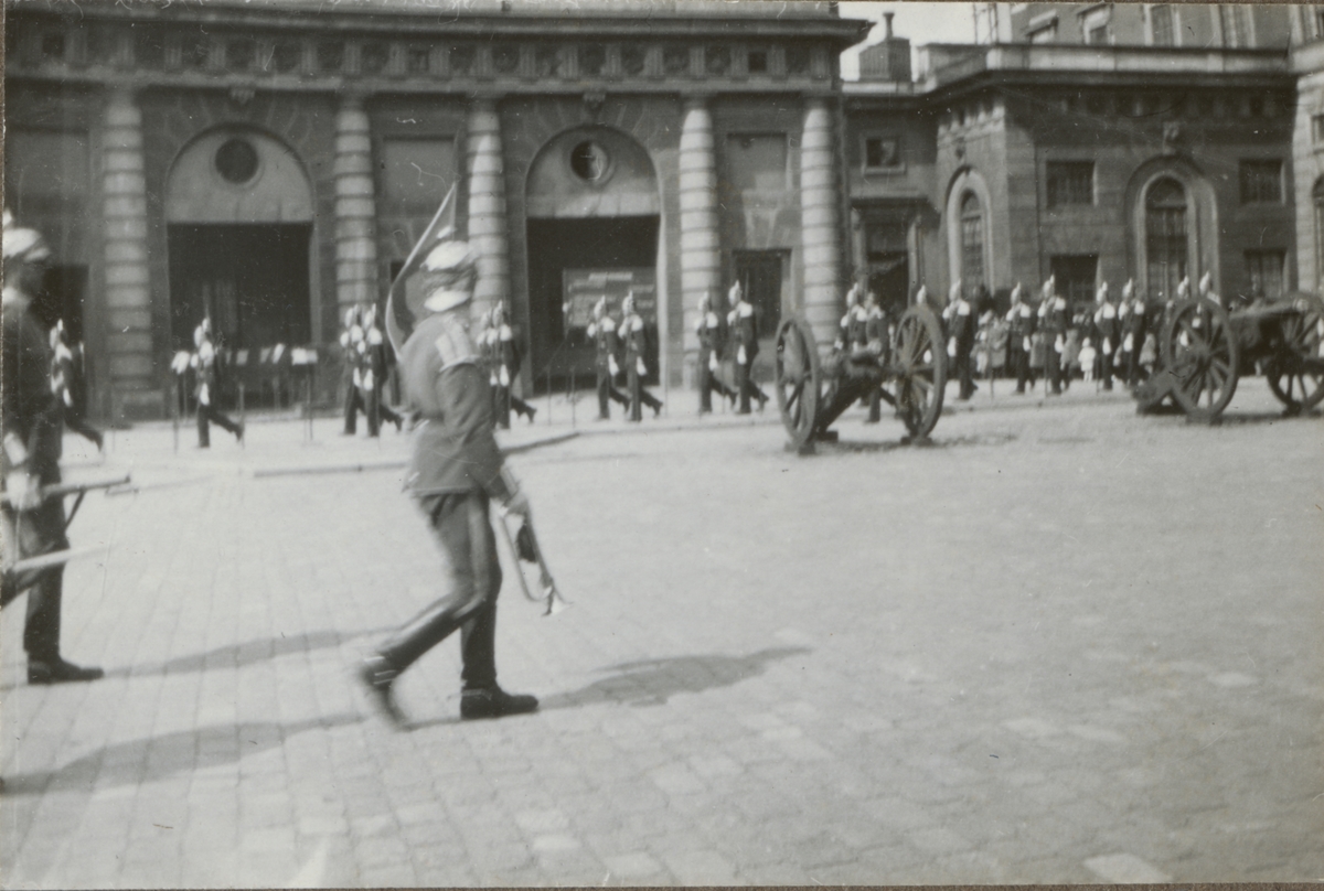 Högvakt på kungliga slottet i Stockholm. Göta livgardes stridsvagnsbataljon, 1928-1930, 1:a kursen.