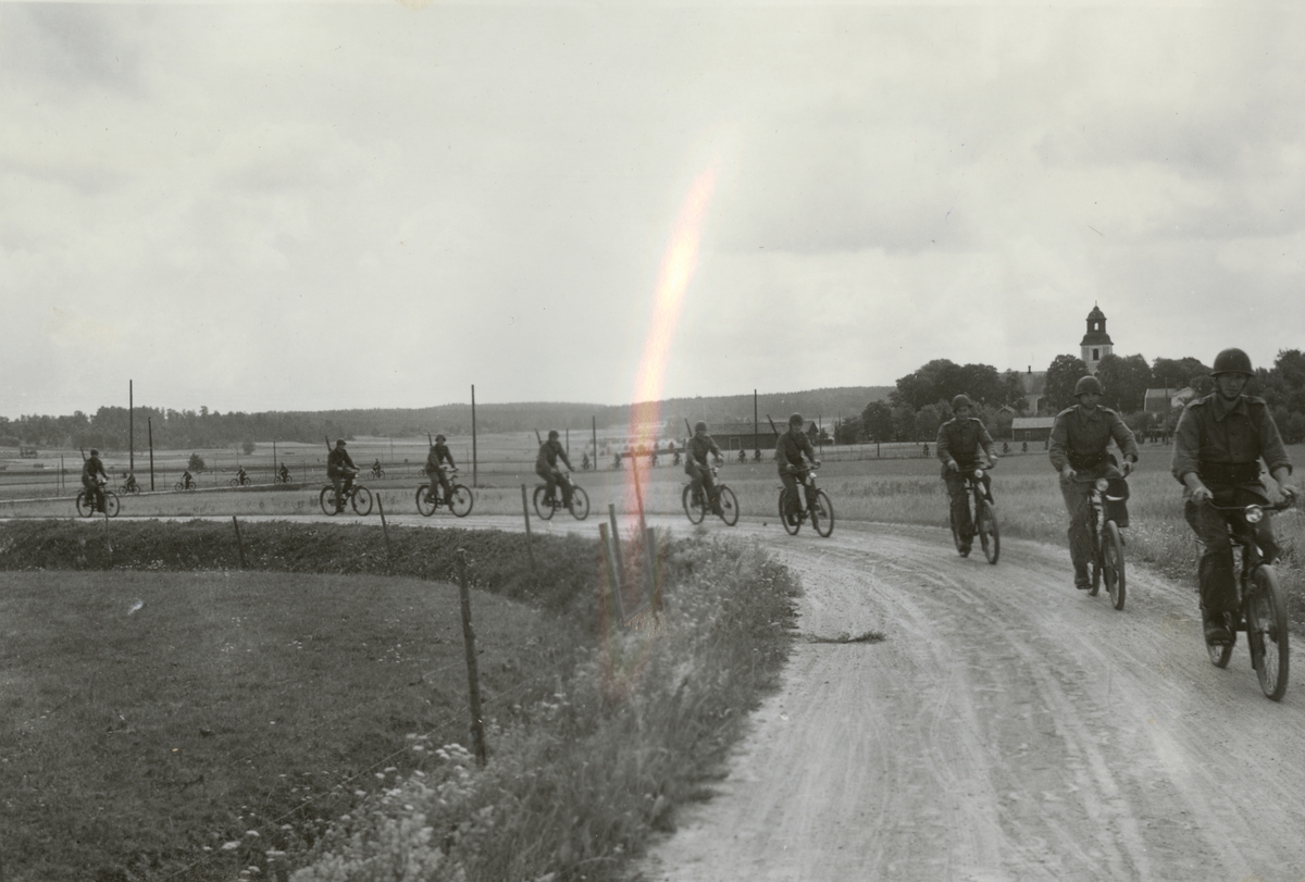 Titel: Soldater från Södermanlands regemente I 10 på cykelmarsch.
