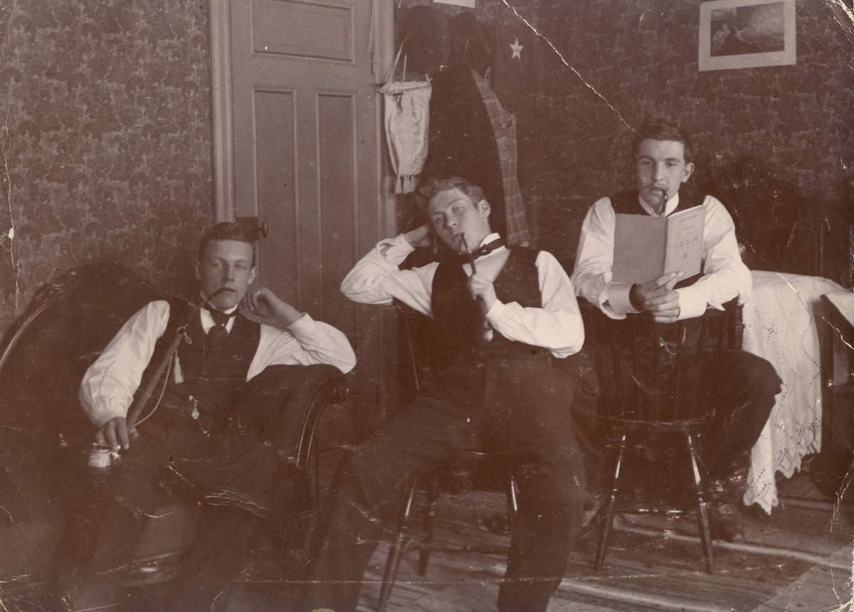 Titel: Text i fotoalbum: "Rökstund i lyan 1900."