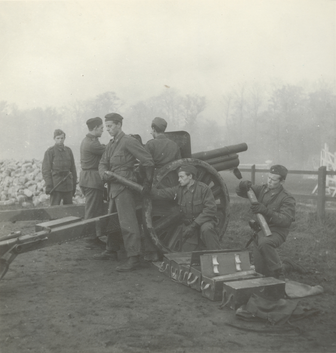 Pjäsexercis med 7,5 cm kanon m/1902-33, Svea artilleriregemente A 1, våren 1947.