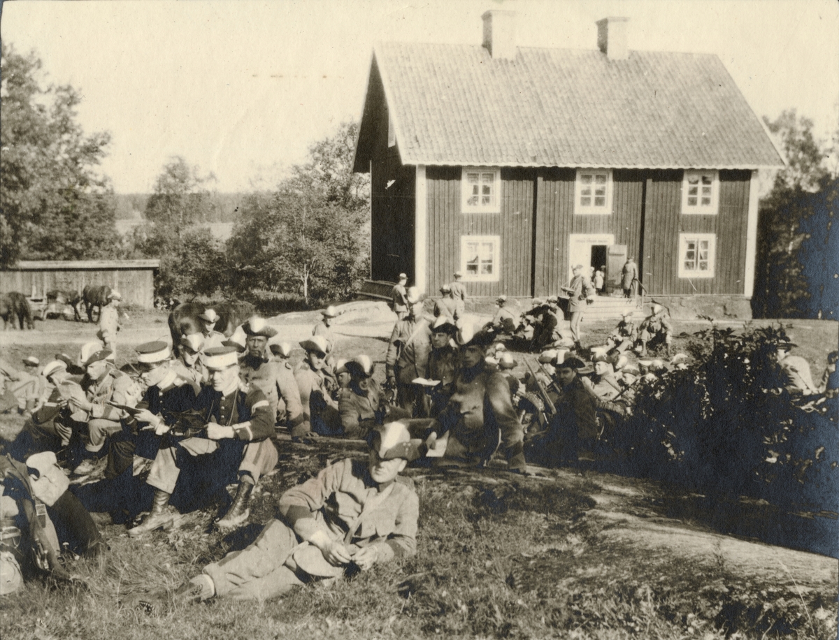 Titel: Text i fotoalbum: "Studentkompaniet under Svea lifgardes regementsövningar 1915."