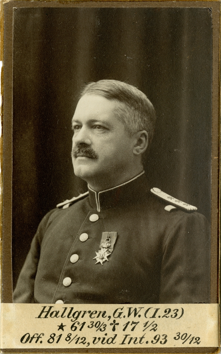 Porträtt av Gustaf Wilhelm Hallgren, officer vid Jämtlands fältjägarekår I 23 och Intendenturkåren.