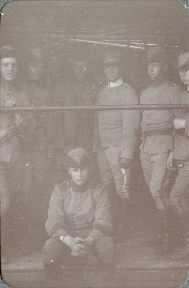 Titel: Gruppbild med soldater från Kronprinsens husarregemente K 7.