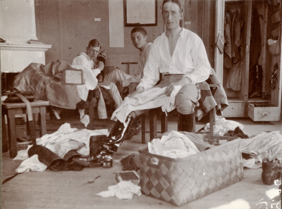 Text i fotoalbum: "Fälttjänstöfningarna vid Östersund. I i 7:s loge fem minuter före söndagsvisitationen".