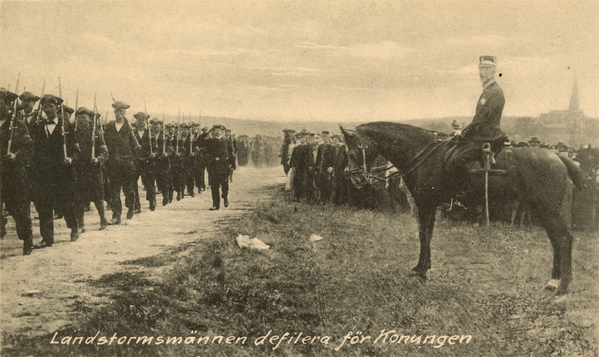 Landstormens mobilisering 1914, landstormsmännen defilerar för Gustav V.