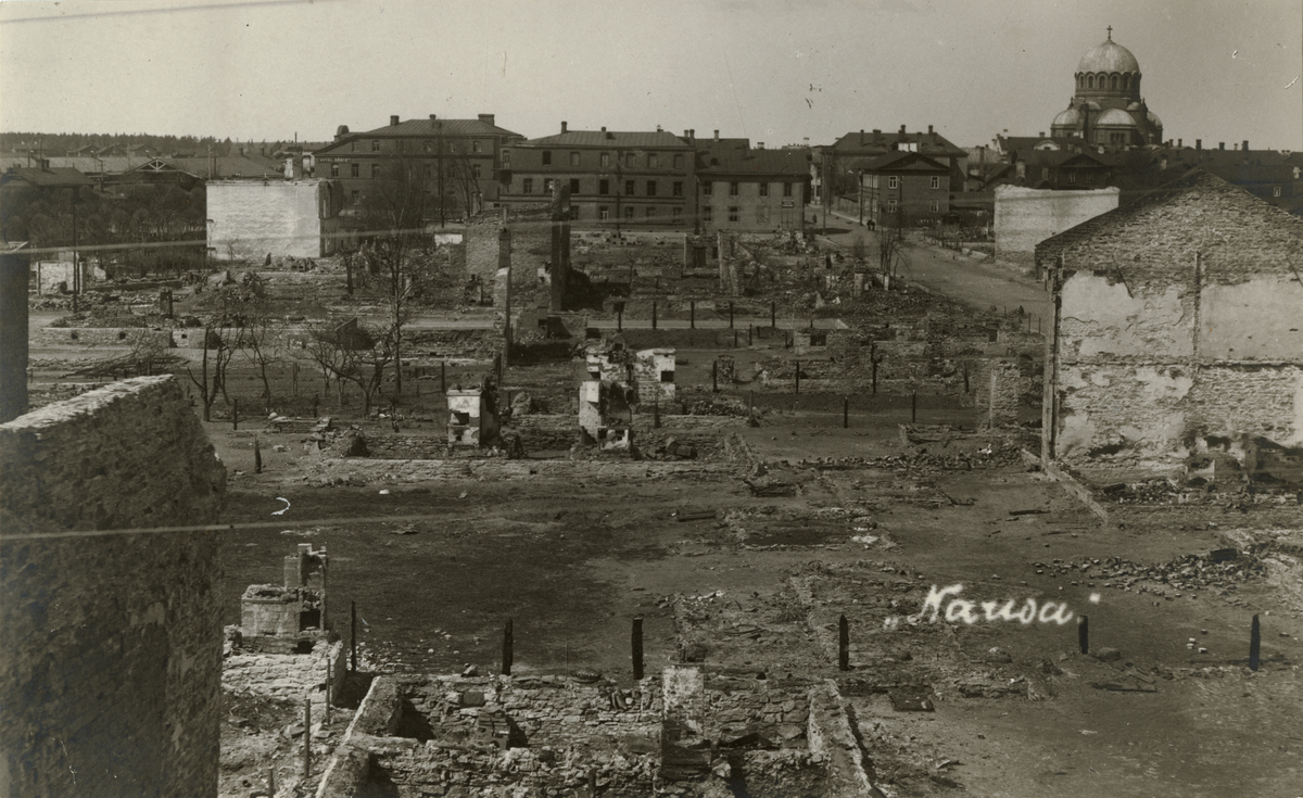 Titel: Text i fotoalbum: "En stadsdel efter bombardemanget."