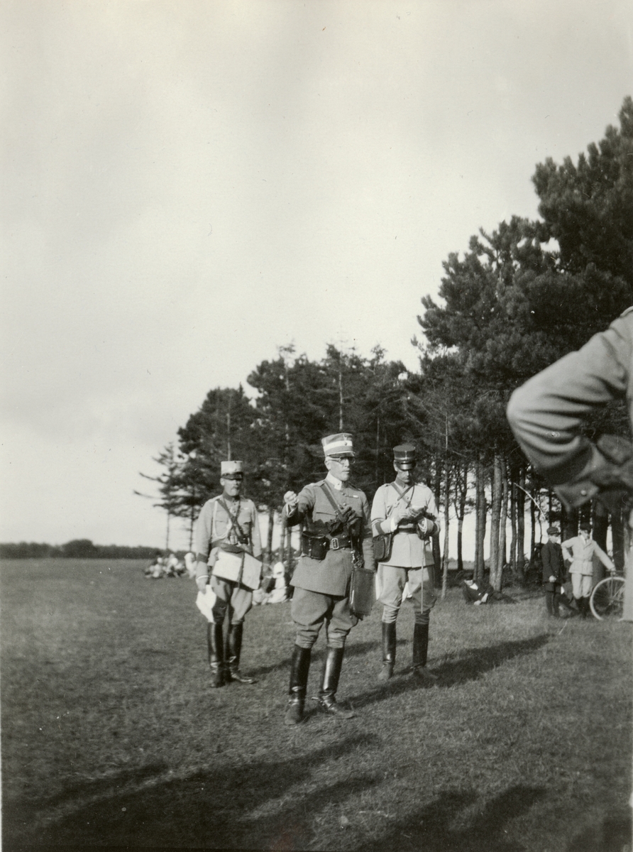 Titel: Text i fotoalbum: "Förbindelsekursen 1920". Soldater på övningsplats.