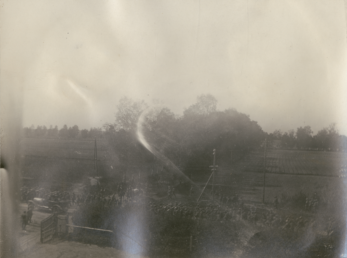 Titel: Text i fotoalbum: "Från H. M. Kajsarens besök å Mitau den 25 maj 1916. Trupperna marchera hem."