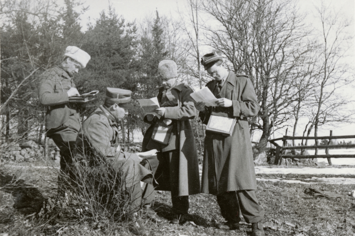 Titel: Text i fotoalbum: "Komissarieskolan vid I 9 Depå Axvall febr-mars 1941. Övningar".