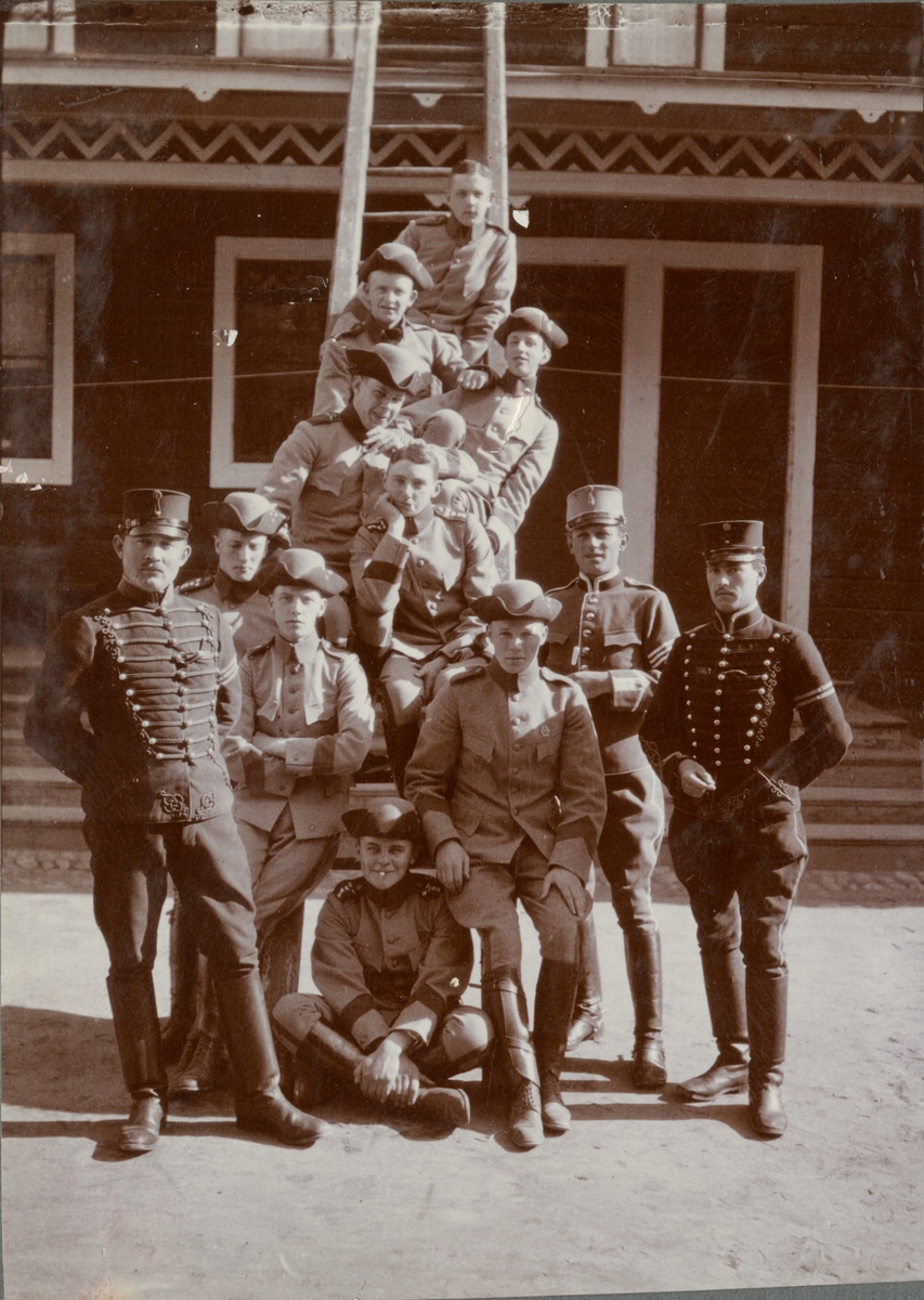 Titel: Text i fotoalbum: "De första "stegen!" på rekryten".