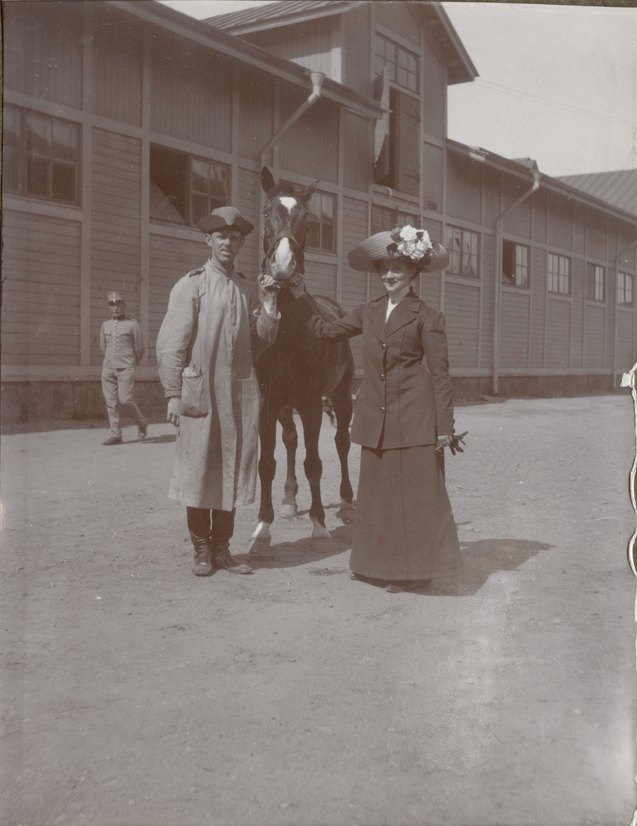 Titel: Text i fotoalbum: "Olle och frök. Scherdin med Snare".