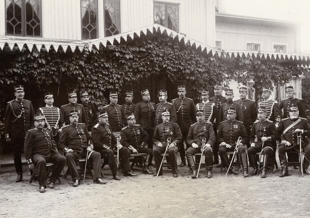 Grupporträtt av officerare vid Värmlands regemente I 22 i Trossnäs.