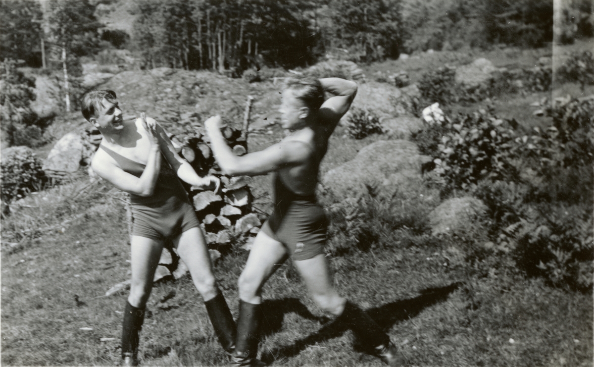 Text i fotoalbum: "AIHS hk fältkörningen sommaren 1934. Tvekamp".