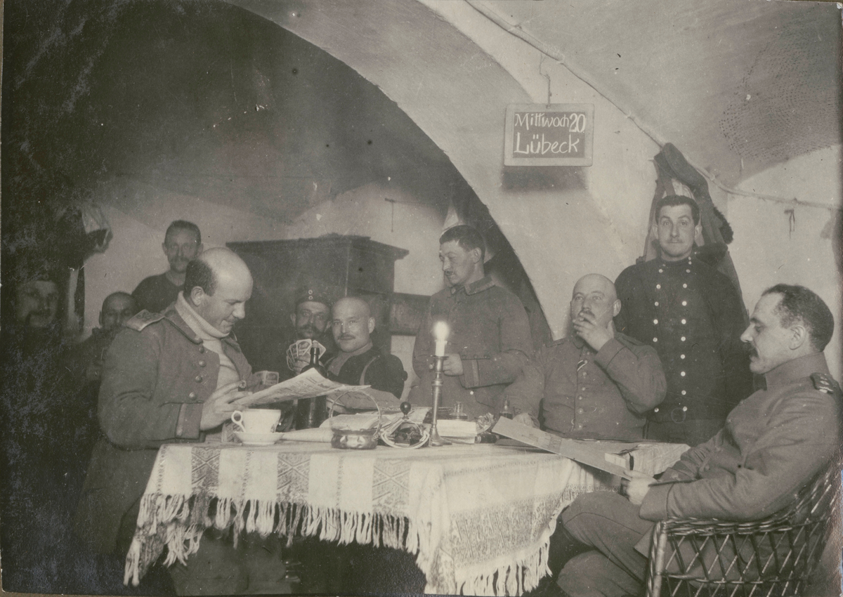 Titel: Text i fotoalbum: "I slottets källare. Hauptmann Werner. Stabsadjutant Schlieman"