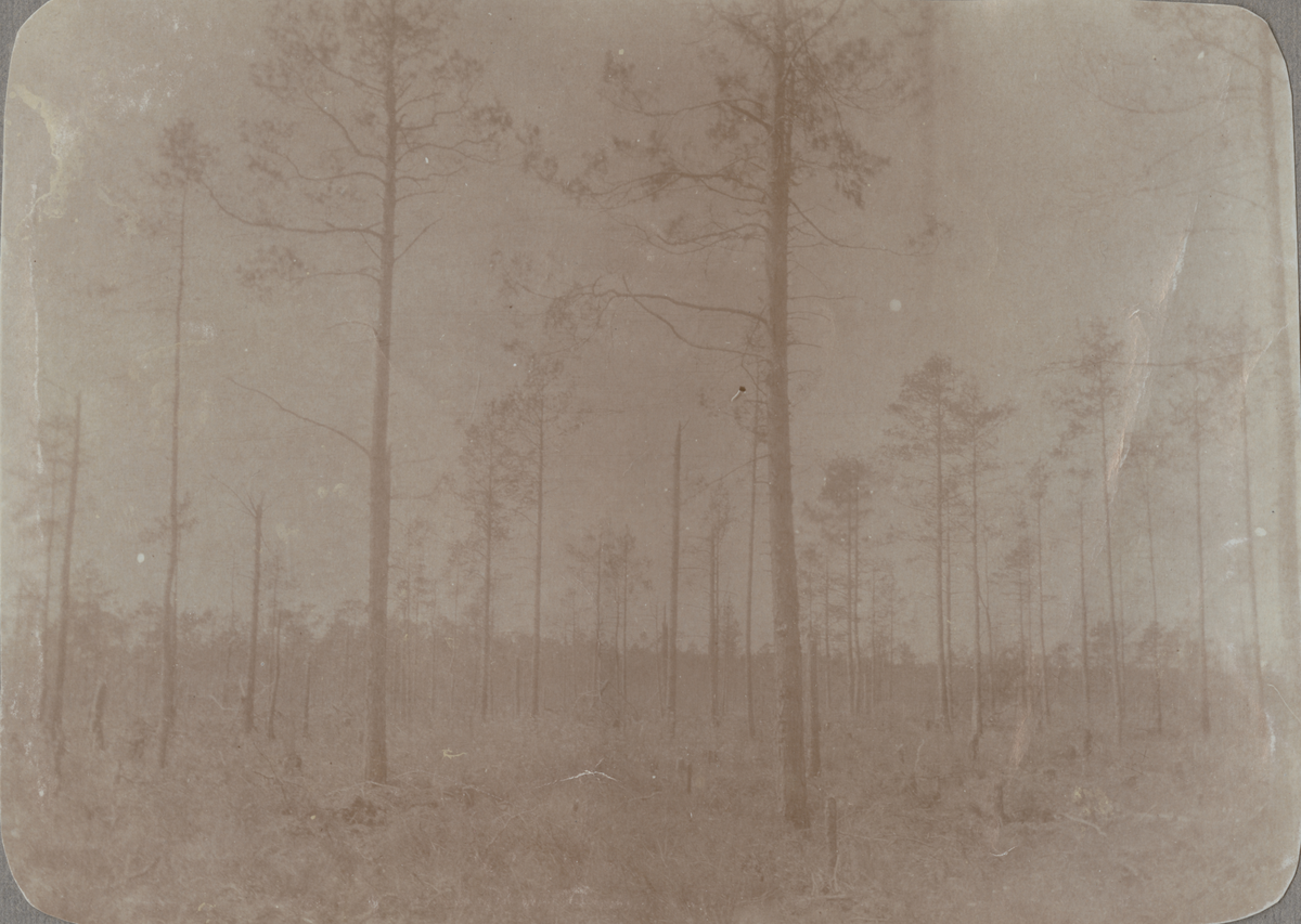 Titel: Text i fotoalbum: "Juli 1917. Af ryska artilleriet sönderskjuten skog."