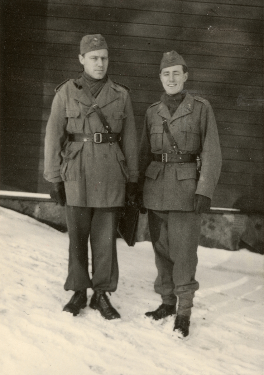 Titel: Text i fotoalbum: "Komissarieskolan vid I 9 Depå Axvall febr-mars 1941. Ch och pluch Samson".