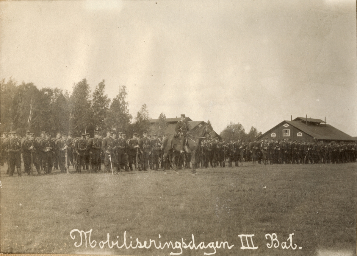 Text på bilden: "Mobiliseringsdagen, III. bat,".