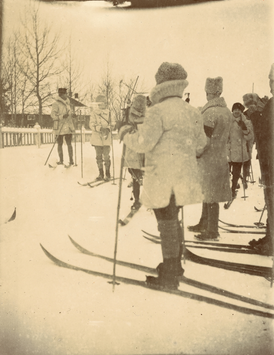 Officerare från Smålands husarregemente K 4 på skidor, vinterövning i Norrbotten omkring 1910.