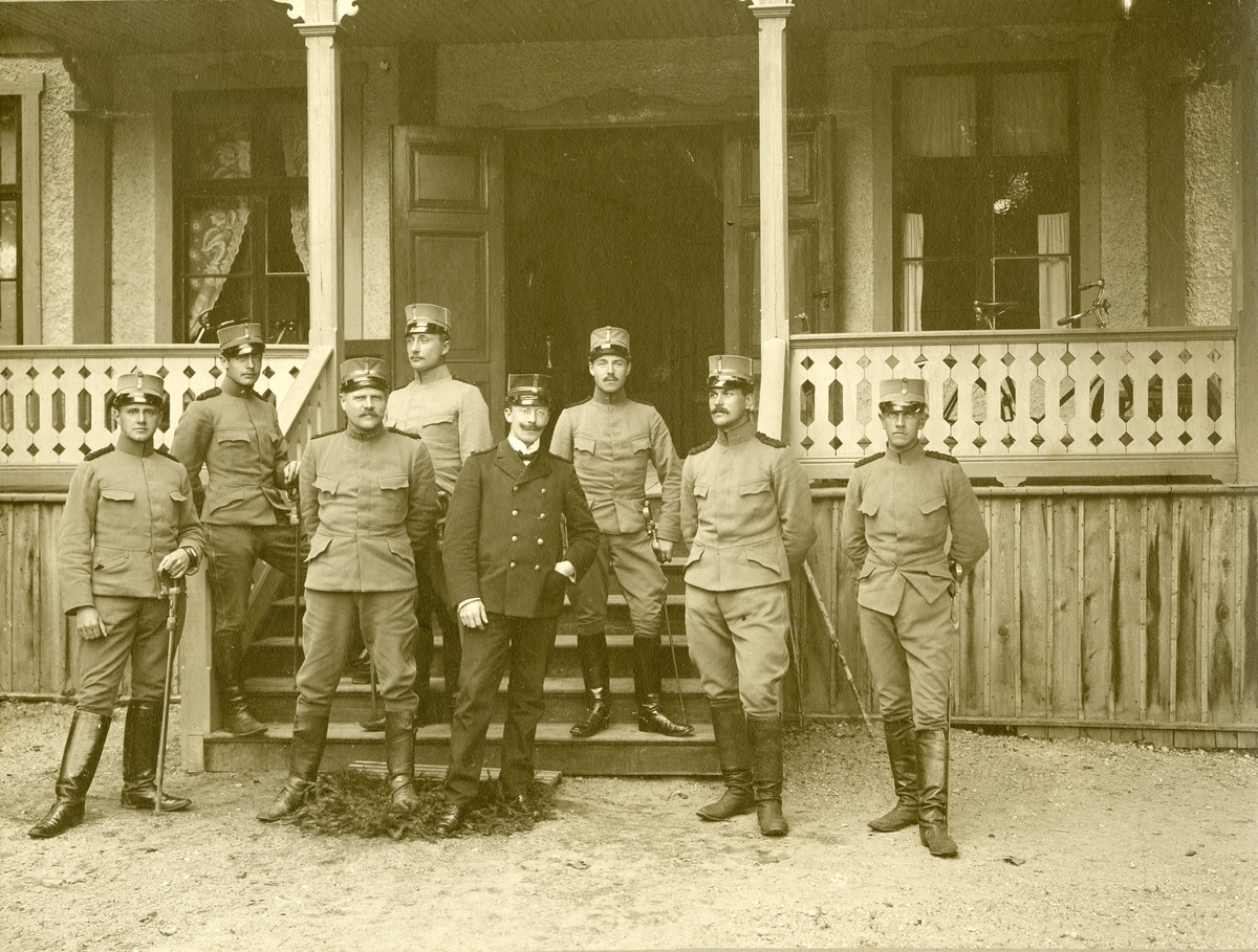 Grupporträtt av officerare från Fortifikationen på regementsmötet i Vreta 1906.