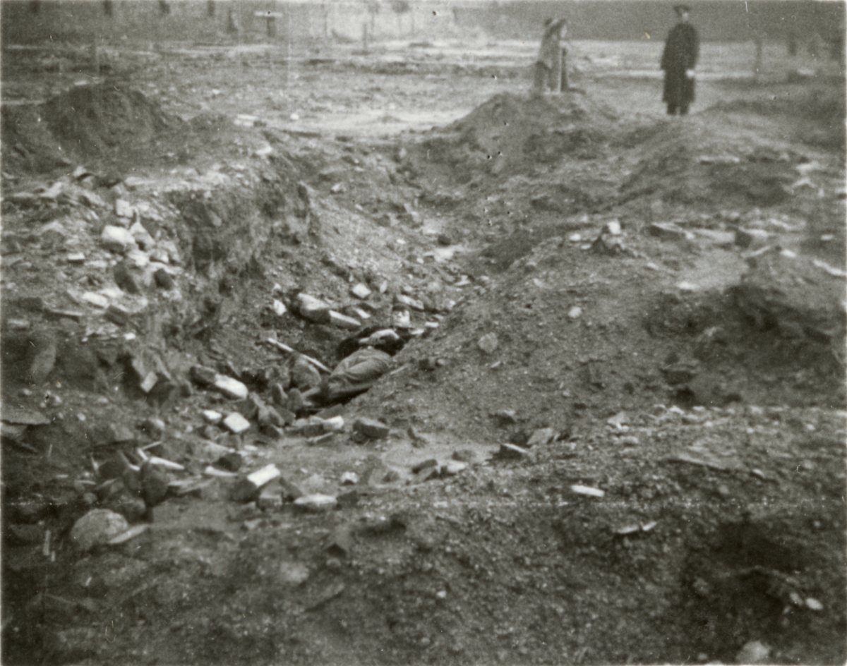 Text i fotoalbum: "1935. Okt. Luftförsvarsövningen i Skåne. "Anfallet" mot Hälsingborg. Sårade omhändertagas".