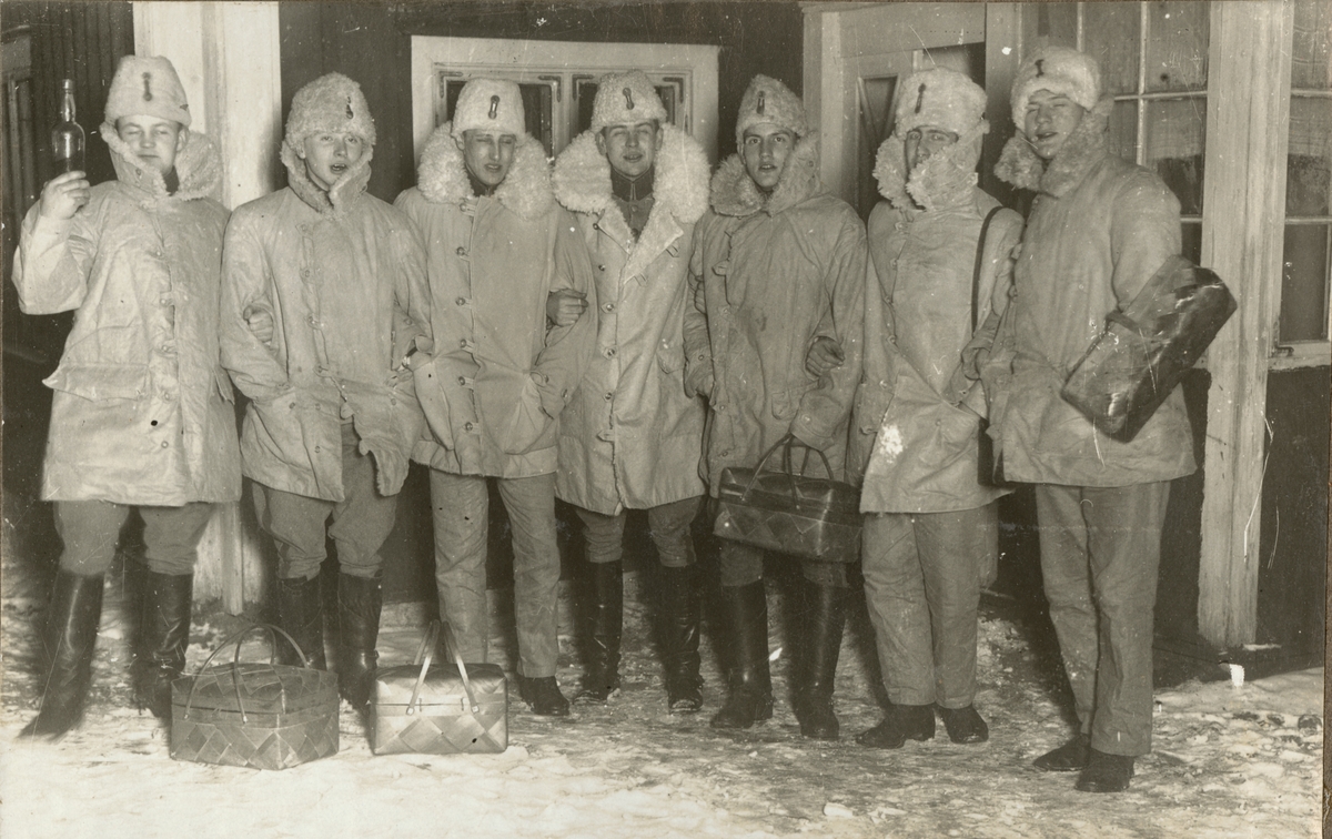 Titel: Soldater framför en byggnad.