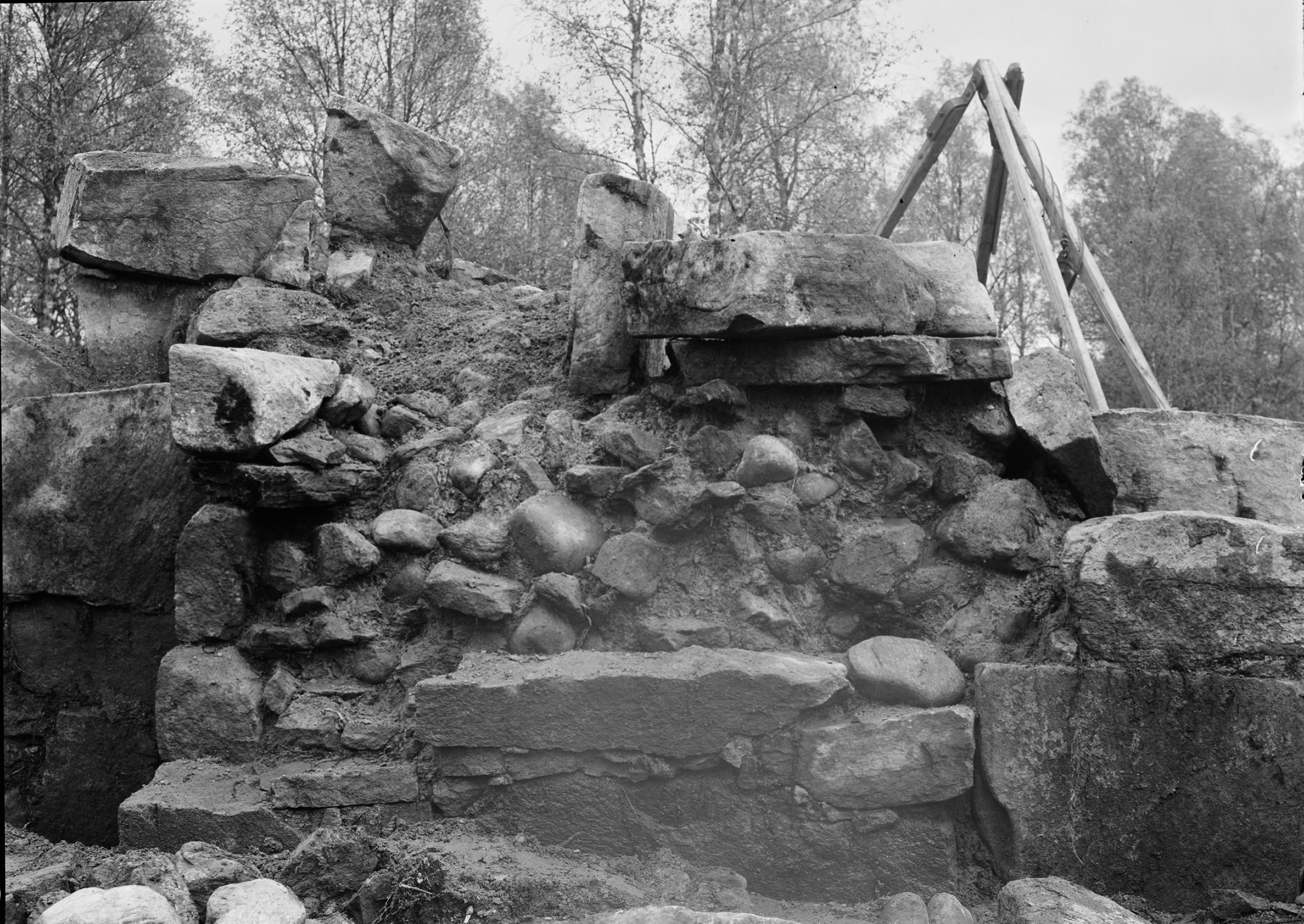 Långhusets nordöstra hörn. Observera murningstekniken.