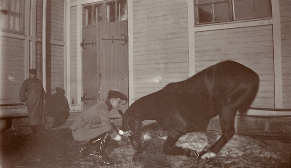 Carl Bernadotte af Wisborg och hästen Jupiter, Kavalleriskolan.