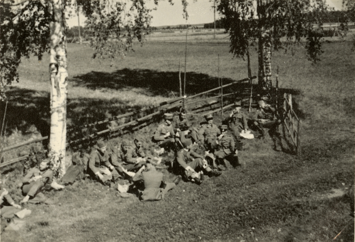 Titel: Text i fotoalbum: "Fältövningar i Hedemora 18.-24.8.1938. Efter slaget."