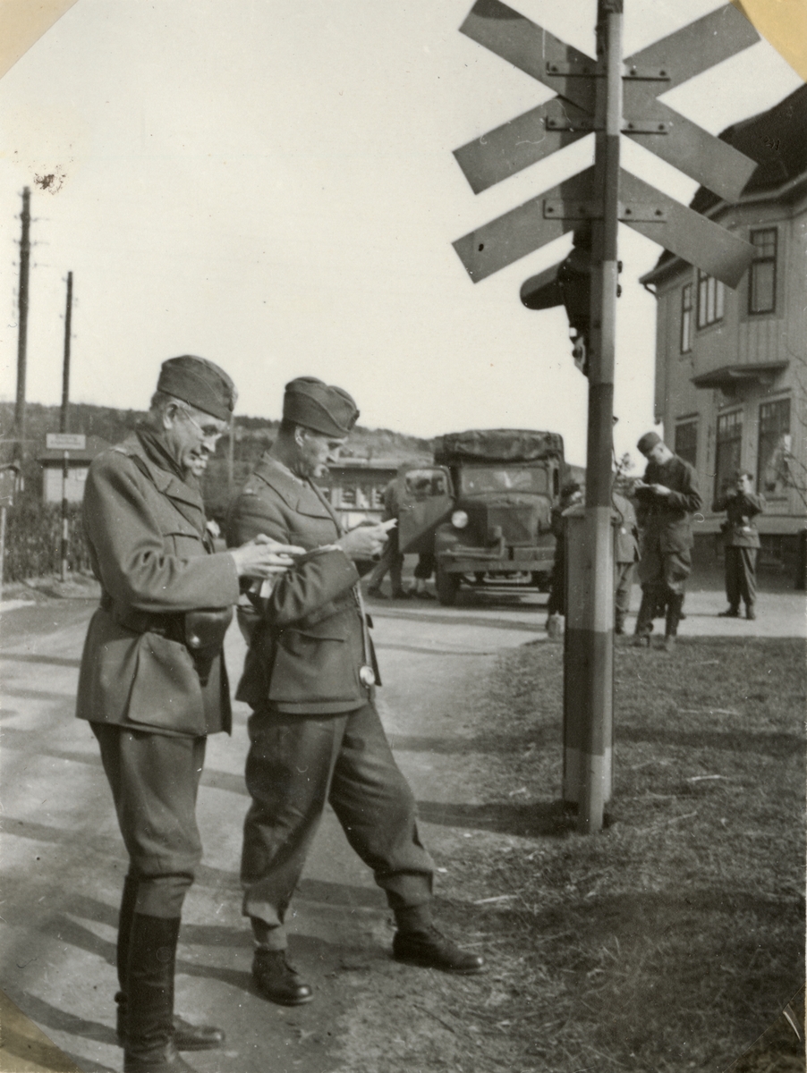 Titel: Text i fotoalbum: "Fälttjänstövn Borgås 8/6 1943. Kapt. Westermark och Genberg".