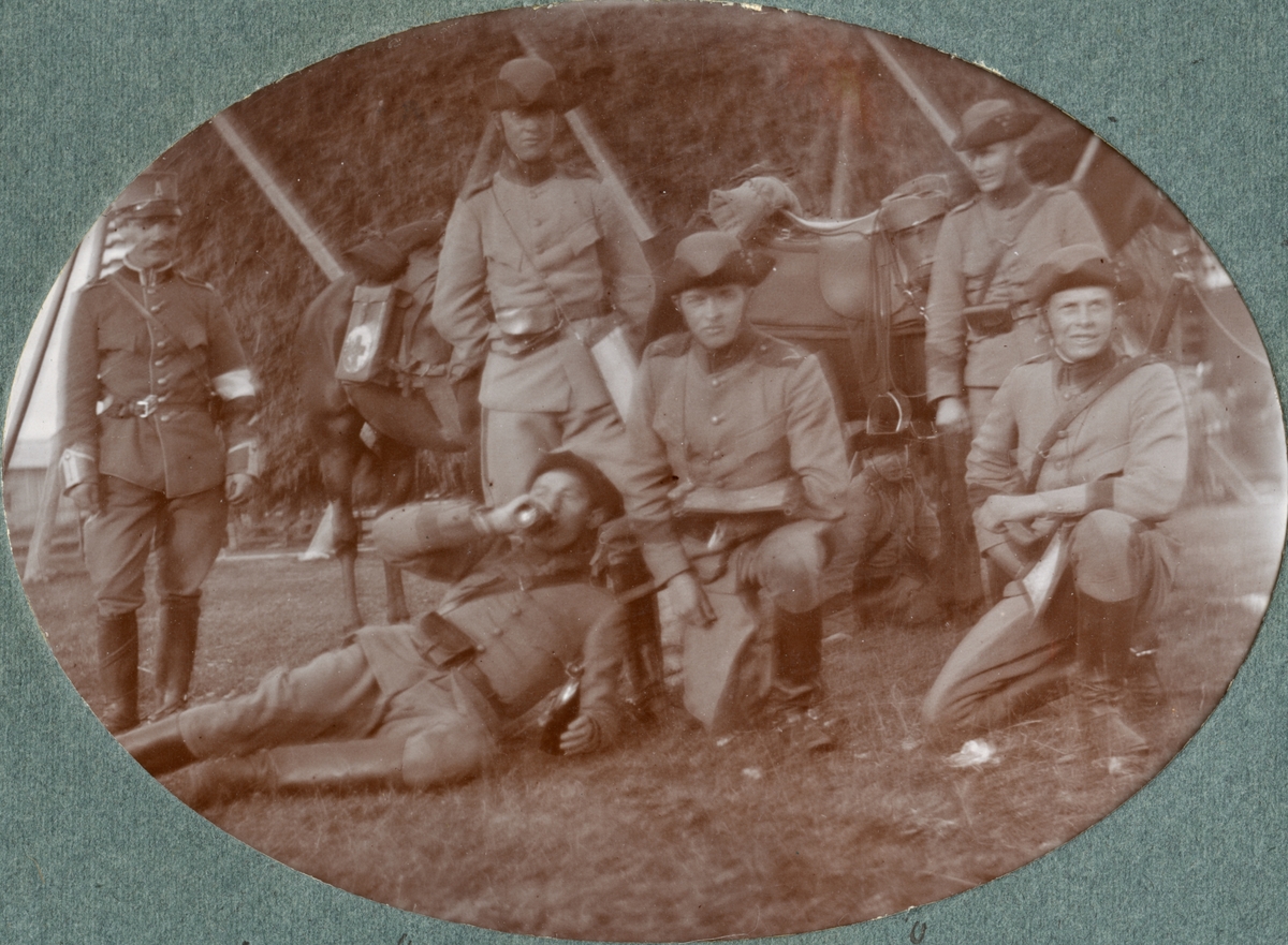 Titel: Gruppbild med soldater från Kronprinsens husarregemente.