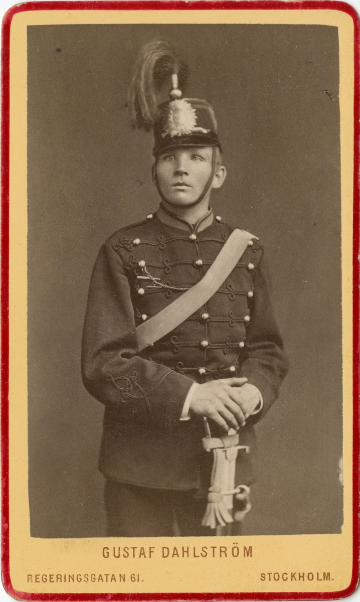 Porträtt av Gustaf Adolf Jansson Sköld, artillerist nr. 14 vid 10:e batteriet, Svea artilleriregemente A 1.