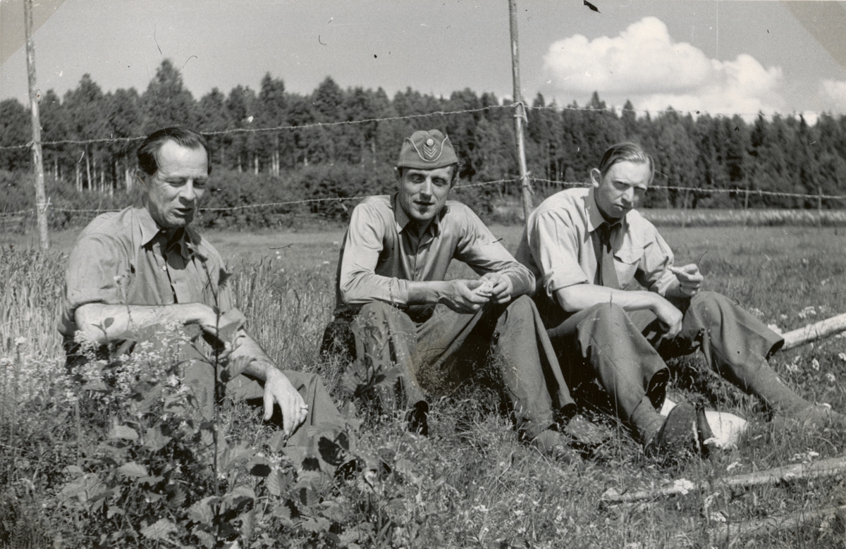 Titel: Text i fotoalbum: "Min sista Hk-kurs på ingfältövning juli 1946. Tre läkare".