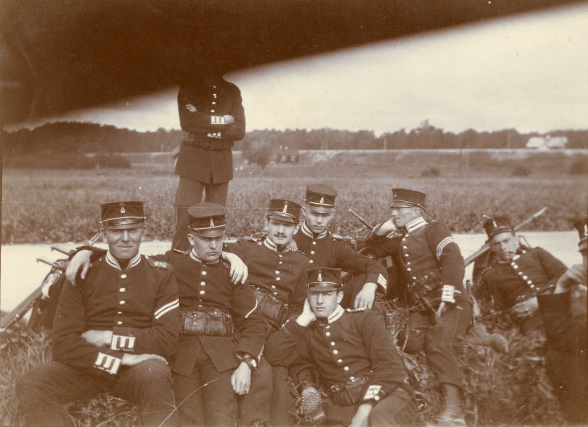 Titel: Soldater vid Göta livgarde I 2 har vilopaus under övning.