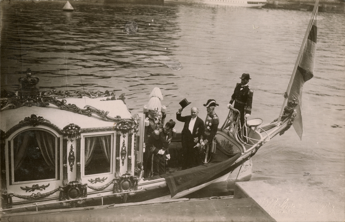 Titel: Text i fotoalbum: Franska Republikens President landstiger vid Logårdstrappan.